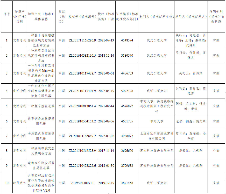 主要完成單位:武漢工程大學(xué)、中南建筑設(shè)計(jì)院股份有限公司、震安科技股份有限公司、上海史狄爾建筑減震科技有限公司、中南大學(xué)、武漢博宏建設(shè)集團(tuán)有限公司、福州大學(xué)、湖南省建筑設(shè)計(jì)院集團(tuán)股份有限公司、中信建筑設(shè)計(jì)研究總院有限公司、高速鐵路建造技術(shù)國家工程研究中心